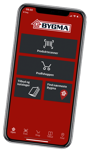 Appen er en del af Bygmas Proffshop. Det betyder, at du selvfølgelig handler til dine aftalte priser og at du kan starte bestillingen på Appen og færdiggøre den på webshoppen, når du er tilbage på kontoret. Det betyder at du har en huskeliste lige ved hånden!
