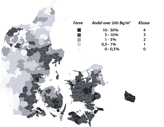 Se det typiske radonniveau i og omkring danske boliger på www.sst.dk/da/straalebeskyttelse