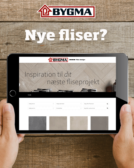 I alle Bygma butikker har vi en stor fliseudstilling, hvor du kan se og mærke på fliserne. Samtidig står vi klar med vejledning og kan bestille mange andre fliser hjem, som ikke er i vores faste sortiment.
