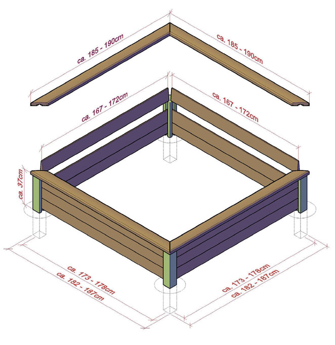 Da en sandkasse er en del lavere end fx et hegn, er vindpåvirkningen meget mindre. Det betyder også, at det i dette tilfælde ikke er nødvendigt at grave stolperne ned i den ellers normale frostfrie dybde på + 90cm. Du kan nøjes med at grave stolperne 25 - 30 cm ned. Det kan gøres ved enten at bruge et pælebor eller en tynd spade som fx en drænspade.