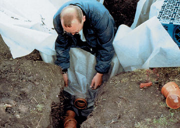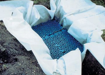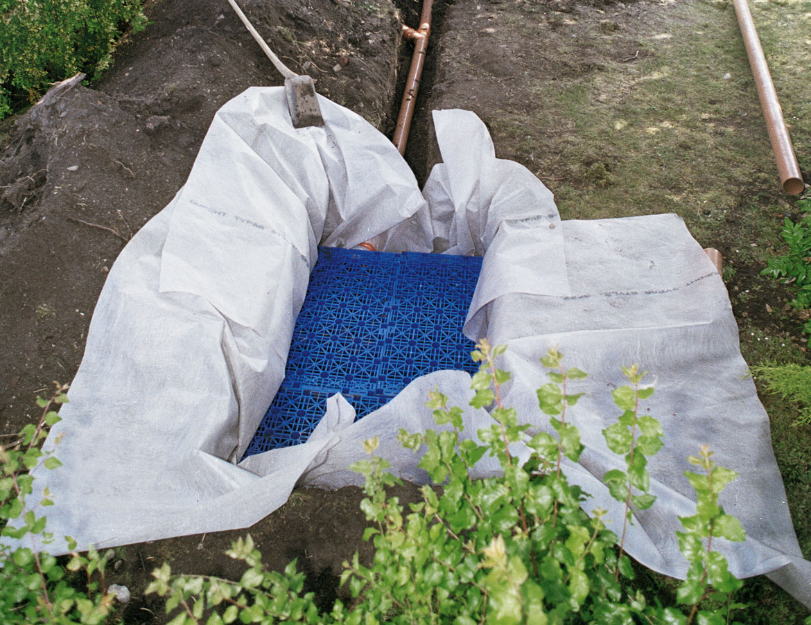 6. Pak regnvandskassetten ind i geotekstil og dæk til med jord.