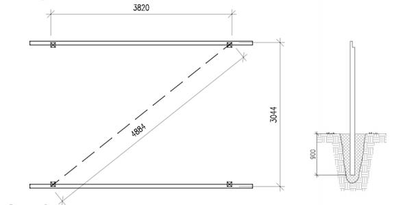 Der skal være 382 cm fra forkant af den forreste stolpe til bagkant på den bagerste. Ligeledes skal der være 304,4 cm fra højre kant af bagerste stolpe til venstre kant af den anden bagerste stolpe.