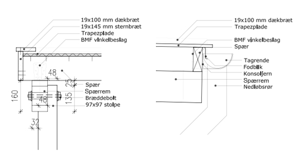 Monter sternbrædder i spærender og langs spærret foran carporten. Ovenpå sternbræt monteres dækbræt med udhæng på 1 cm.