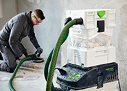 Robuste komponenter giver Festool Cyklonen lang levetid. Cyklonen kan fastgøres til Festool støvsugeren med T-LOC og forbindes med den medleverede slange. Alt efter anvendelse kan du så arbejde med eller uden cyklon.