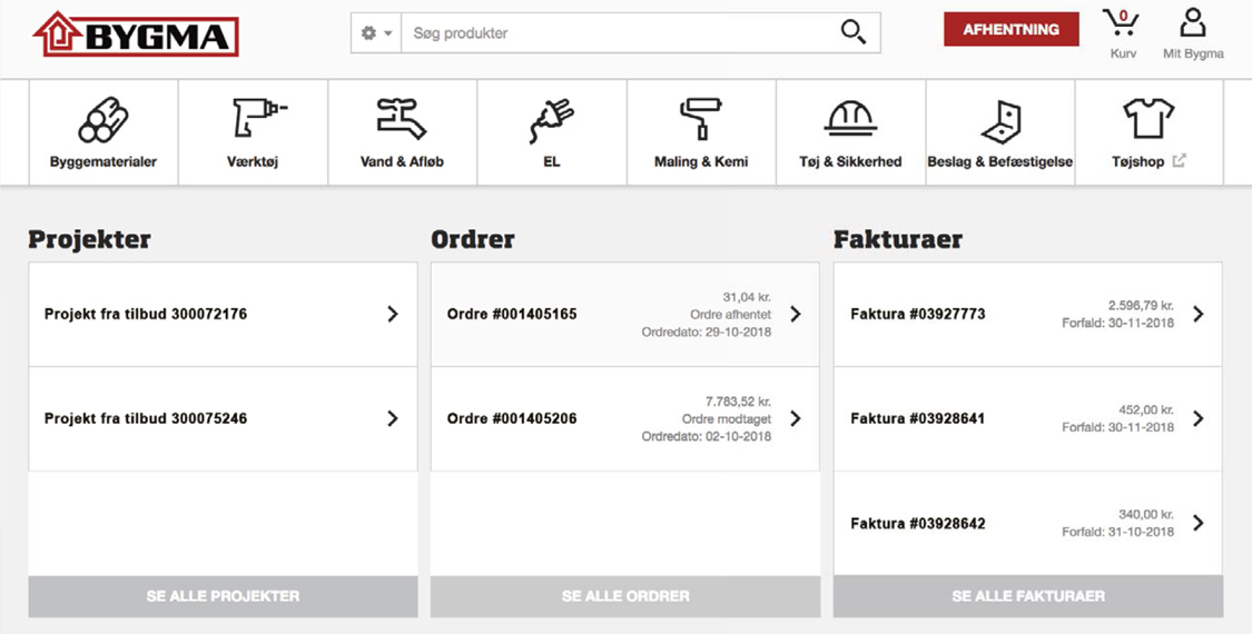 ”Bygma.dk/proff fungerer rigtig godt. Den har en enkel og logisk opbygning. F.eks. ligger alle byggematerialer under overskriften byggematerialer. Så det er nemt at